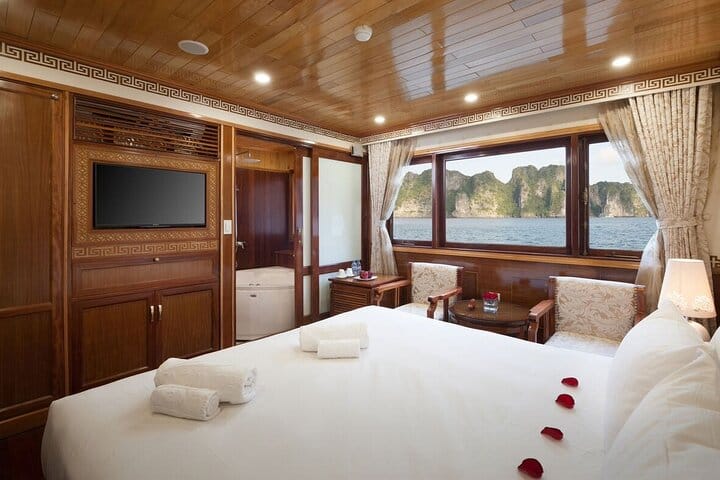 Experience the wonder of Halong Bay on a 2-day, 1-night luxury cruise! This all-inclusive journey includes convenient round-trip transfers, delicious onboard meals, and a comfortable stay in a sea-view cabin. Explore the famous Sung Sot Cave (Surprise Cave), take in panoramic views from Titop Island, and relax amid stunning limestone landscapes. With elegant accommodations, attentive service, and unforgettable scenery, this cruise offers the perfect combination of luxury, adventure, and natural beauty, ideal for couples, families, or solo travelers seeking a memorable getaway.
