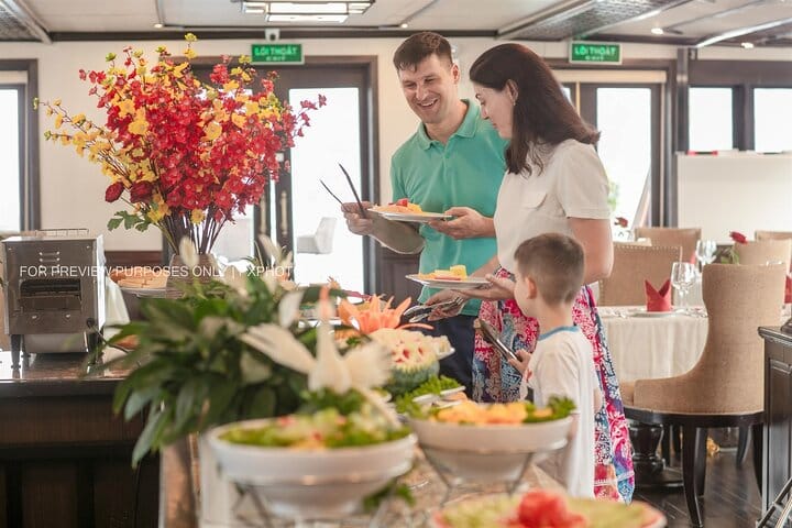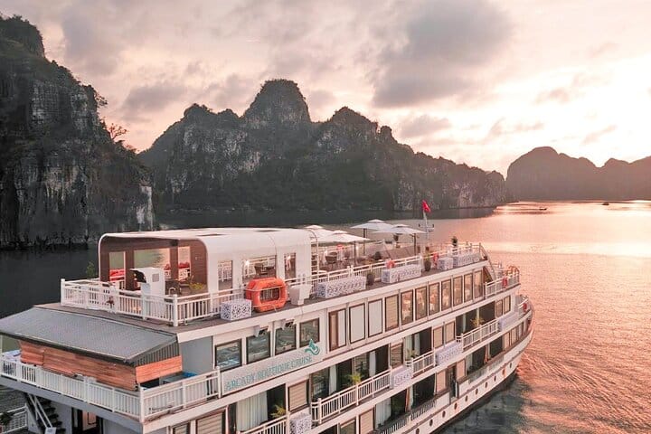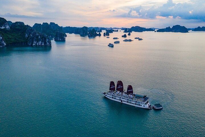Indulge in the breathtaking beauty of Halong Bay aboard the luxurious Arcady Boutique Cruise, a boat fit for royalty. Enjoy complimentary gourmet meals and exciting activities like kayaking near iconic limestone karsts, hiking or swimming on Titop Island, and exploring the mesmerizing Sung Sot Cave. Glide through the emerald waters in elegant boutique style, then unwind in the evening with a thrilling squid fishing adventure or a lively karaoke session, creating unforgettable memories on this exclusive 2-day Halong Bay getaway from Hanoi.