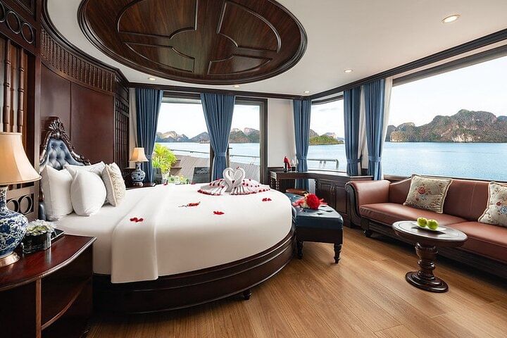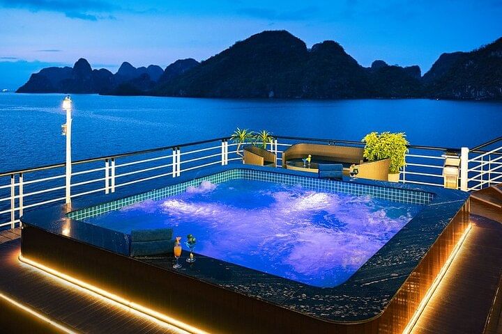Embark on the best-selling 2-day luxury cruise exploring the stunning Ha Long Bay and Lan Ha Bay. Enjoy convenient roundtrip transfers from Hanoi or Tuan Chau Harbor, Hạ Long, and relax in your private balcony cabin aboard a premium cruise ship as you sail past iconic limestone karsts and emerald waters. Experience exciting activities including kayaking, swimming, and visits to hidden caves and traditional fishing villages. Indulge in gourmet meals, a sunset party, and onboard Jacuzzi while soaking in breathtaking views. With exceptional service and comfortable transfers, this cruise offers an unforgettable, immersive journey through one of Vietnam’s most beautiful natural wonders.