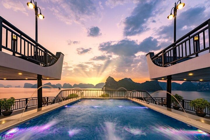 Dora Cruise Luxury Halong Bay – Lan Ha Bay Overnight Cruise from Hanoi offers a premium all-inclusive experience, starting with hotel pickup in Hanoi. Guests enjoy a scenic cruise through Halong and Lan Ha Bay, exploring spots like Dark & Bright Cave and Ba Trai Dao Islet. The tour includes kayaking, swimming, a cooking class, sunset party, seafood meals, and onboard entertainment. Ideal for travelers seeking comfort, nature, and Vietnamese culture in one unforgettable overnight journey.