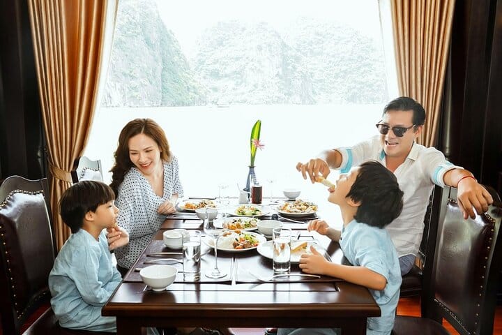 Welcome aboard Erina Cruise! We are honored to have you join us for an unforgettable 2-day, 1-night journey exploring the breathtaking and less-visited corners of Lan Ha Bay. Our unique itinerary takes you beyond the typical routes to enchanting destinations like the stunning Dark & Bright Caves and the serene Tra Bau area. Enjoy a luxurious 5-star experience including roundtrip limousine transfers from Hanoi, authentic kayaking or traditional bamboo boat rides guided by local fishermen, and elegant private balcony cabins onboard. At Erina Cruise, we strive to provide a memorable and personalized adventure showcasing the hidden gems of Lan Ha Bay.