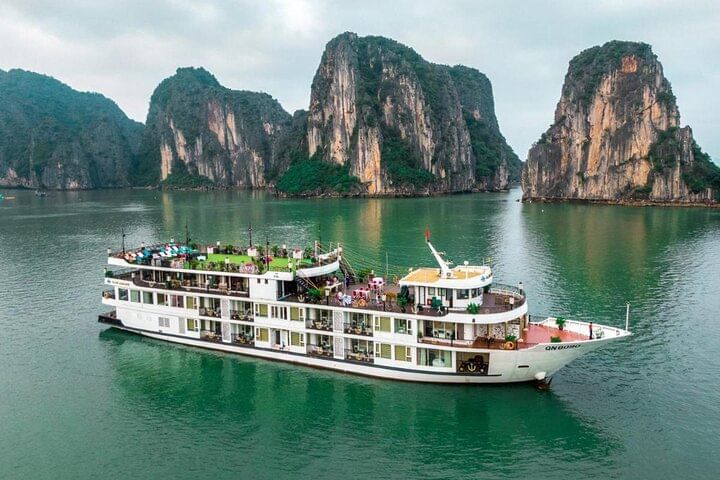This two-day group tour departs from Hanoi and takes you to visit Halong Bay and participate in several activities. You don't have to worry about making many plans for food, housing, transportation, or other things; instead, you may spend more time exploring the bay. Take a cooking lesson, go kayaking, take a bamboo boat trip, or participate in any other activity that your guide and crew have planned. Known for its stunning limestone karsts that rise dramatically out of the emerald waters, Halong Bay is a UNESCO World Heritage Site. As you ride down this magnificent bay, your senses will be overcome with sheer admiration at the sight.