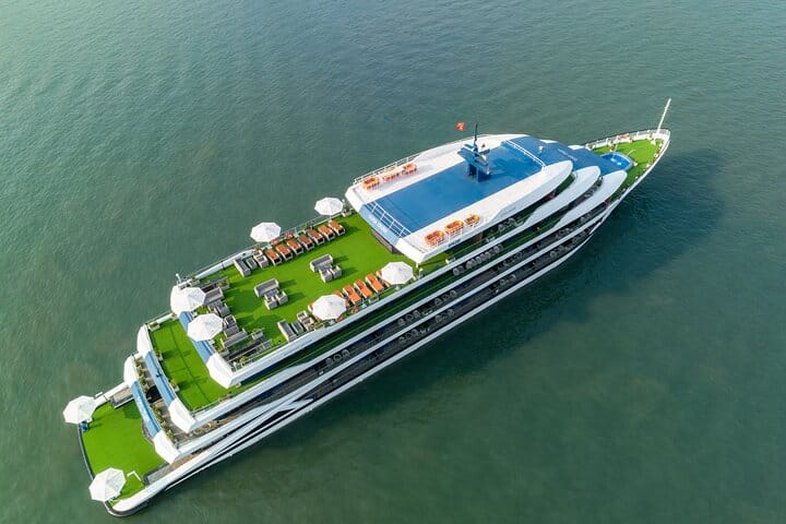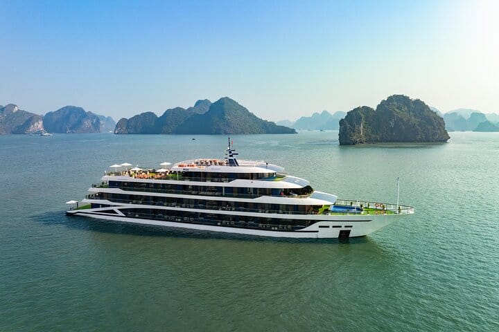 Experience Ha Long Bay in style on a leisurely overnight cruise with your own private luxury cabin featuring a balcony for uninterrupted views of this UNESCO World Heritage site. Cruise around stunning karst islands, visit picturesque spots like Ba Trai Dao Islet for swimming, hiking, and kayaking, and explore the mystical Dark and Bright Caves. Enjoy all meals, round-trip transfers from Hanoi, free onboard WiFi, and a variety of day and night activities designed for relaxation and making new friends.