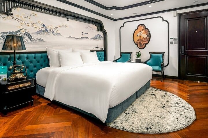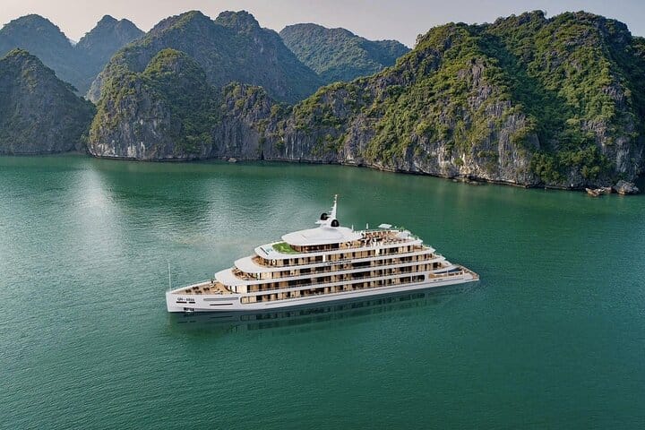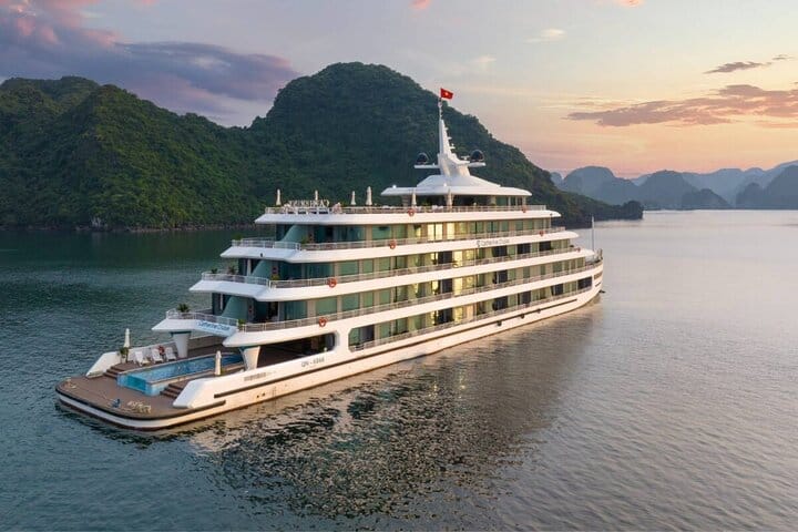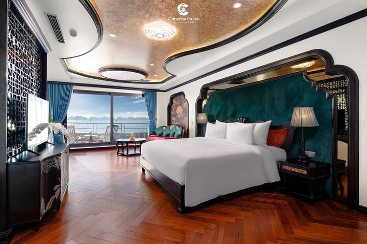 Catherine Cruise – Your Luxury 2-Day Ha Long Bay Retreat offers an unforgettable experience aboard a modern floating resort launched in September 2023, designed for maximum comfort and elegance. Measuring 90m long and 15m wide, the cruise accommodates up to 117 guests with spacious cabins starting from 40m², each offering stunning views of Ha Long Bay’s iconic limestone karsts. Guests can enjoy all-inclusive gourmet dining, leisure activities such as kayaking, squid fishing, spa treatments, and sunset parties, as well as onboard amenities including a sundeck, outdoor pool, and private balconies. Perfect for travelers seeking a luxury 2-day cruise from Hanoi or Ha Long, Catherine Cruise combines romantic scenery, world-class comfort, and exciting activities to create a truly memorable Ha Long Bay experience.