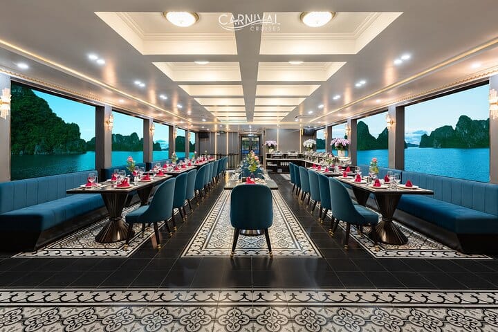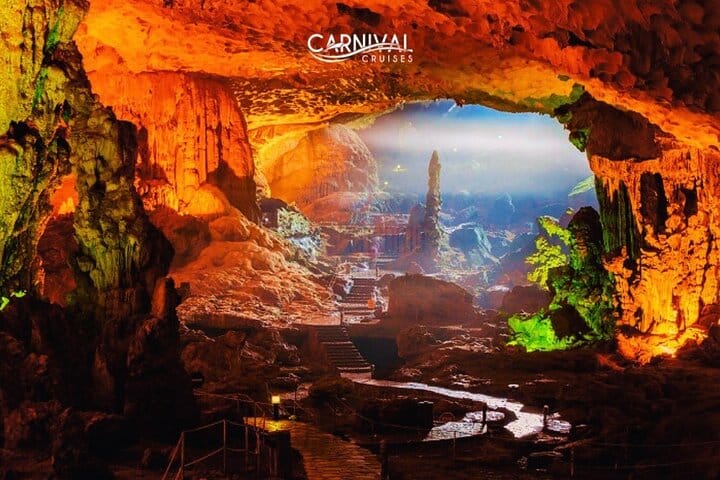 Discover the beauty of Halong Bay, a UNESCO World Heritage Site, on a luxury Carnival Cruise from Hanoi. Sail past iconic limestone formations, explore the stunning Sung Sot Cave, enjoy kayaking or a bamboo boat ride at Luon Cave, and relax on Titov Island with beach time or a scenic hike. Savor a delicious onboard lunch and end the journey with a relaxing Sunset Party while admiring the golden views of Halong Bay.