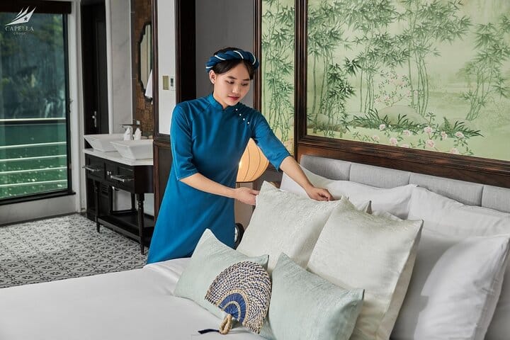 Discover the unparalleled luxury of the Capella 6-star Cruise 3-day tour, exploring the stunning natural wonders of Halong Bay and Lan Ha Bay from Hanoi. This exclusive cruise offers elegant accommodations, world-class service, and a carefully crafted itinerary that lets you immerse yourself in breathtaking limestone formations, hidden caves, and tranquil beaches. Departing from Hanoi, enjoy exciting activities like kayaking, visiting floating fishing villages, and indulging in gourmet Vietnamese cuisine onboard. Ideal for travelers seeking a premium experience combining adventure, relaxation, and cultural discovery in two of Vietnam’s most iconic bays.