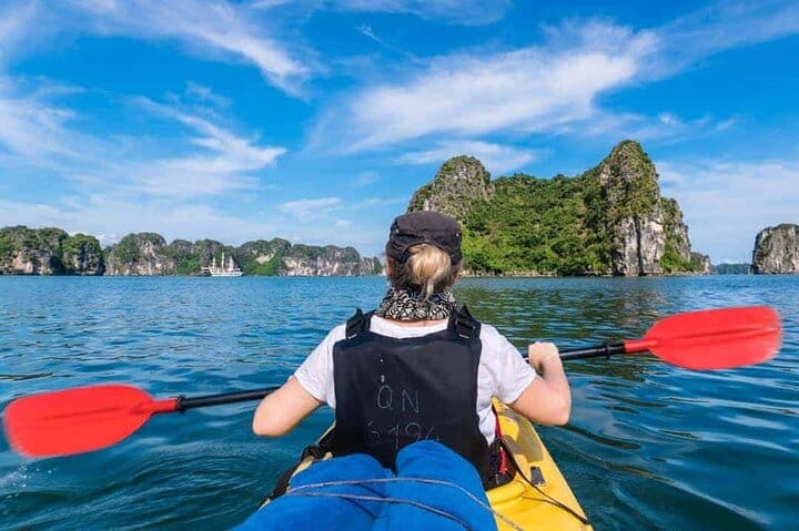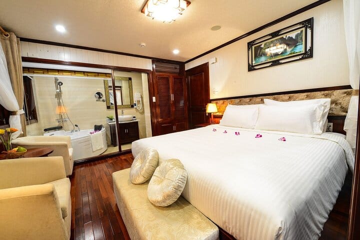 If you are looking for a memorable cruise experience in Halong Bay and Bai Tu Long Bay, this 2 days 1 night Bai Tu Long Bay cruise is an ideal mid-range option. Featuring ocean-view cabins inspired by traditional culture, a comfortable restaurant and bar with large windows, the cruise offers stunning bay scenery in a romantic setting. Traveling along a less visited, off-the-beaten-path route, this journey avoids crowded waterways and takes you deep into the untouched beauty of Bai Tu Long Bay, with activities including cave exploration, kayaking, and visiting a floating village. Perfect for travelers with limited time, the cruise promises personalized service, authentic local experiences, and an unforgettable night amid Vietnam’s natural wonder.