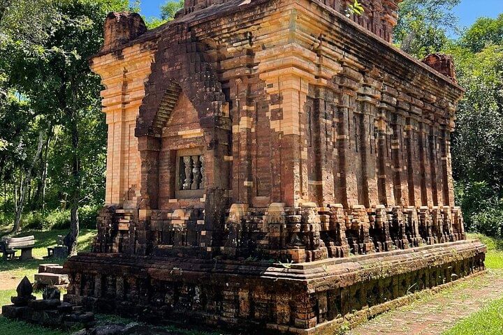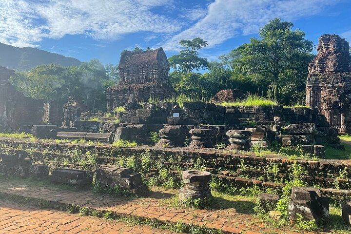 Experience the magic of My Son Sanctuary in the golden glow of sunset on this unforgettable afternoon tour from Hoi An. Travel comfortably in a small group with a knowledgeable English-speaking guide to explore the ancient Champa ruins, a UNESCO World Heritage Site nestled in a peaceful jungle valley. Walk among centuries-old temples, uncover the spiritual and cultural legacy of the Champa Kingdom, and enjoy a captivating Apsara dance performance as the sun begins to set behind the mountains. This scenic and culturally rich half-day sunset tour is the perfect way to experience one of Vietnam’s most iconic historical sites at its most beautiful hour.