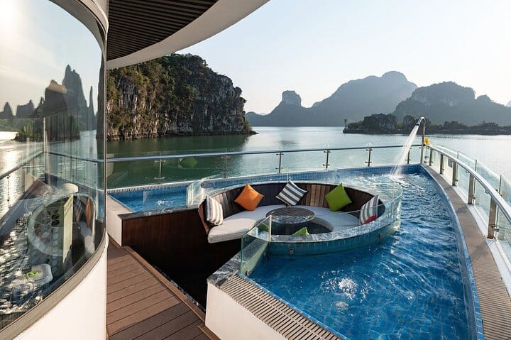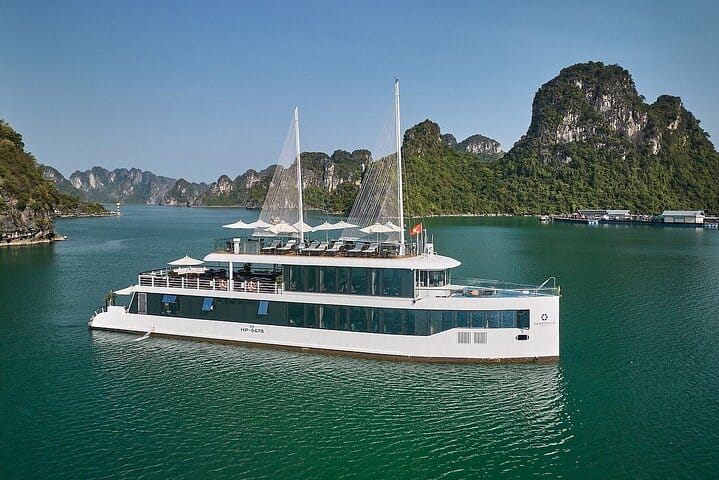 Experience the ultimate day trip from Hanoi with the Top VIP Halong & Lan Ha Bay Luxury Cruise. Travel in comfort from Hanoi to Tuan Chau Marina, then embark on a stylish, modern cruise for a 7-hour journey through the stunning landscapes of Halong and Lan Ha Bay. Discover hidden caves, kayak through peaceful lagoons, swim in crystal-clear waters, and enjoy a gourmet Vietnamese lunch on board. With round-trip limousine transfer, personalized service, and breathtaking scenery, this best-selling one-day cruise is perfect for couples, families, and small groups seeking a premium adventure in northern Vietnam.